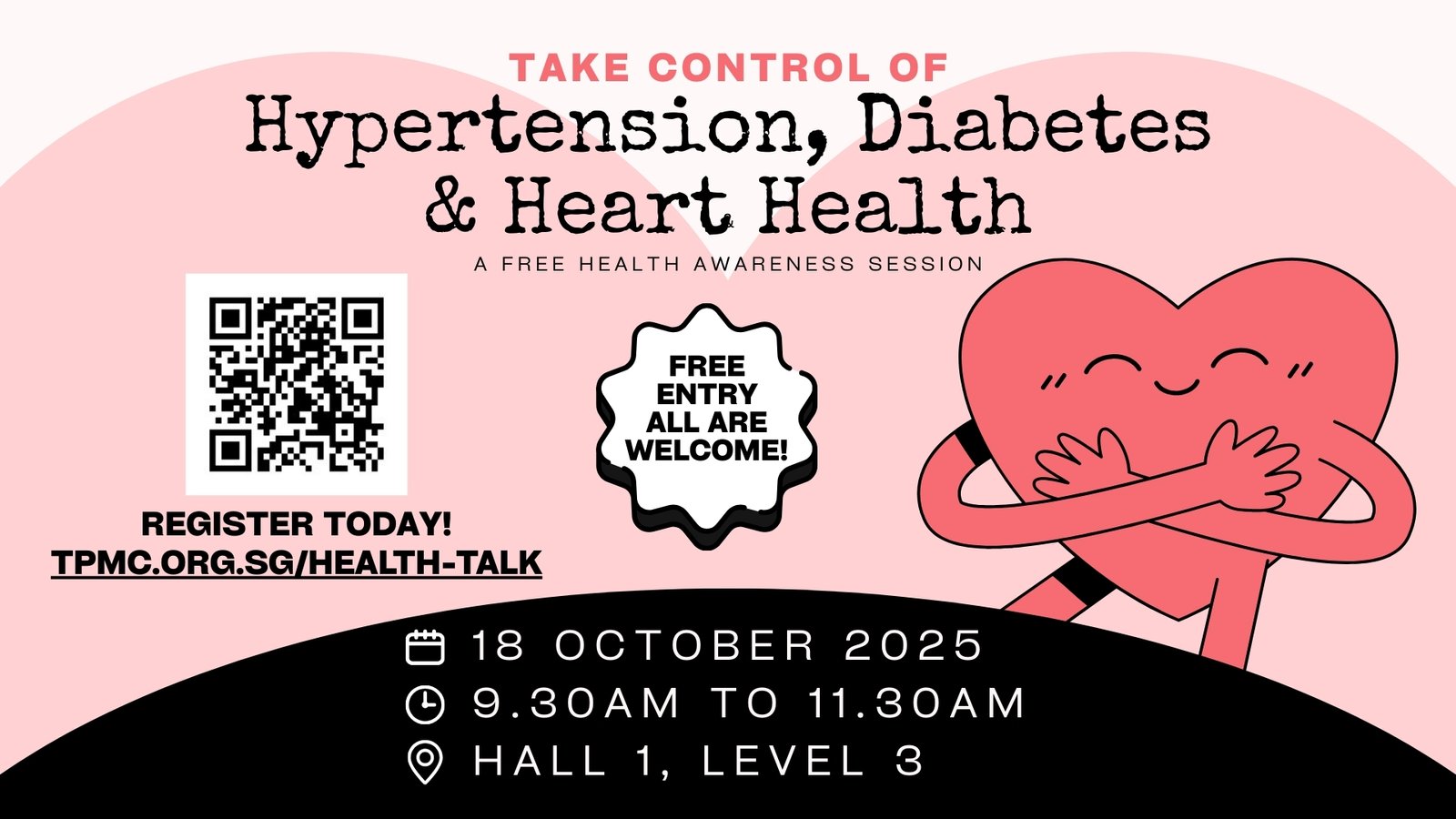 First up is something for your physical health. Our church is organising a free Health Awareness Session to help participants take control of Hypertension, Diabetes & Heart Health. Join the session to understand more about these conditions; bust Dangerous Health Myths, and learn how Smart Food Choices Can Transform Your Health. Caregivers Managing those with Chronic Illnesses can also learn where to find support when they need. Scan this QR code to register.