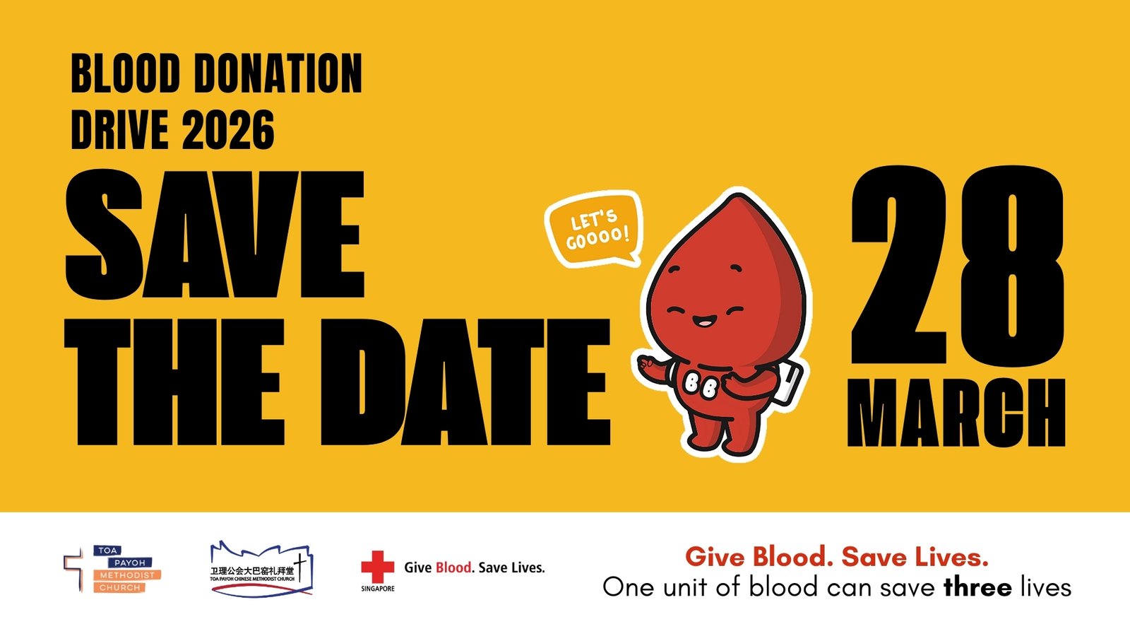 Our Blood Donation Drive for 2026 will be held on 28 March, so save that date. If you stay overnight in some countries, you might need to wait four months after your return, before you can donate blood. You can find more information at the giveblood.sg website and adjust your travels plans accordingly if you need to.