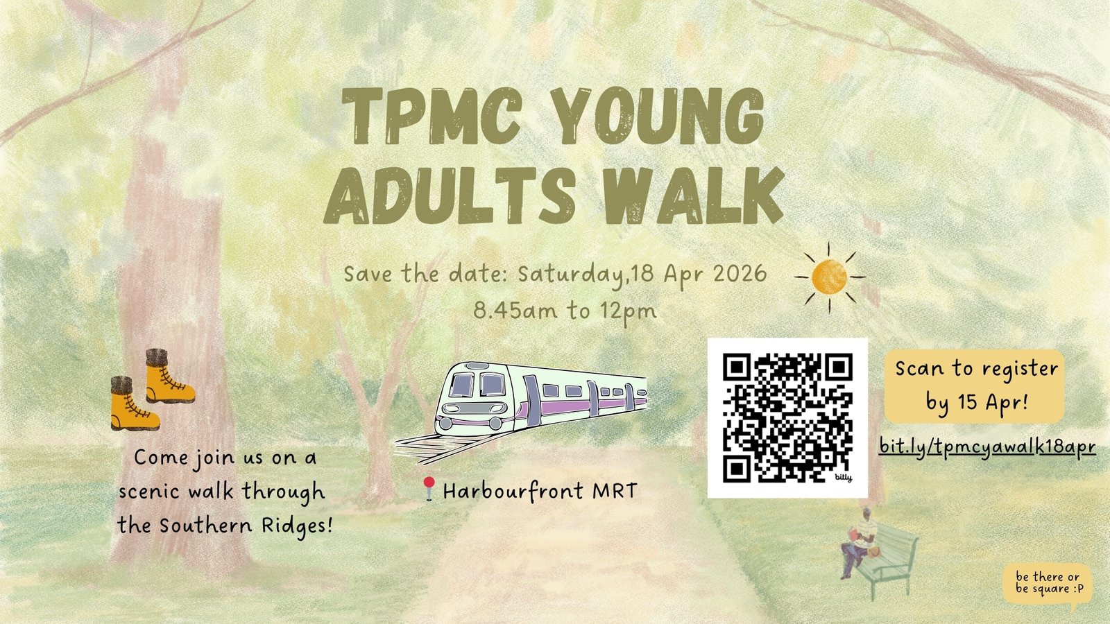TPMC young adults ministry is going for scenic morning walk at the Southern Ridges on Saturday, 18 April.