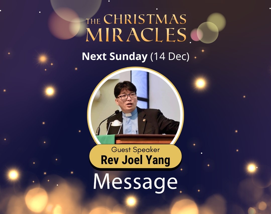Next Sunday, 14 December, we have a guest preacher to tell us about the Message of The Christmas Miracles. He is Rev Joel Yang, the…